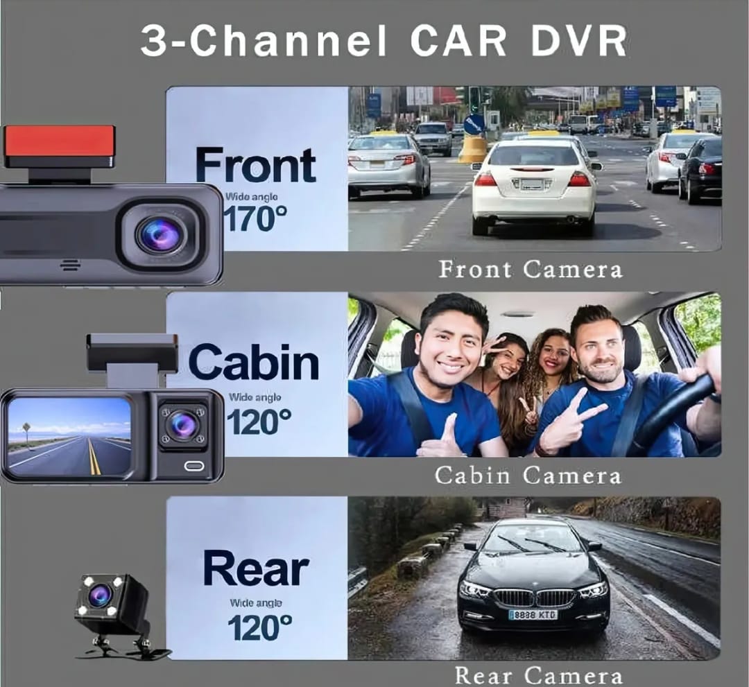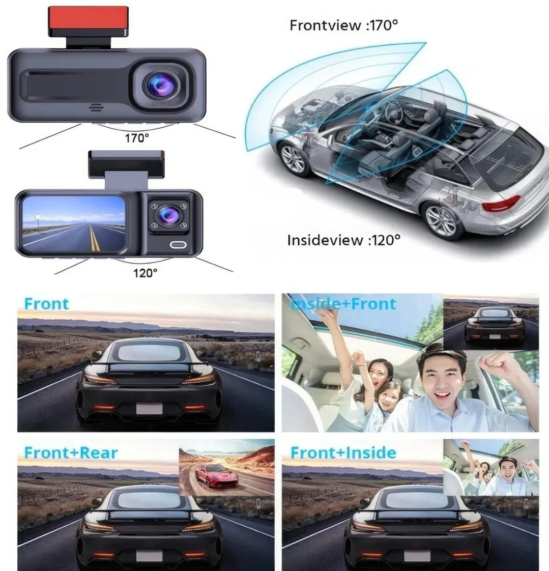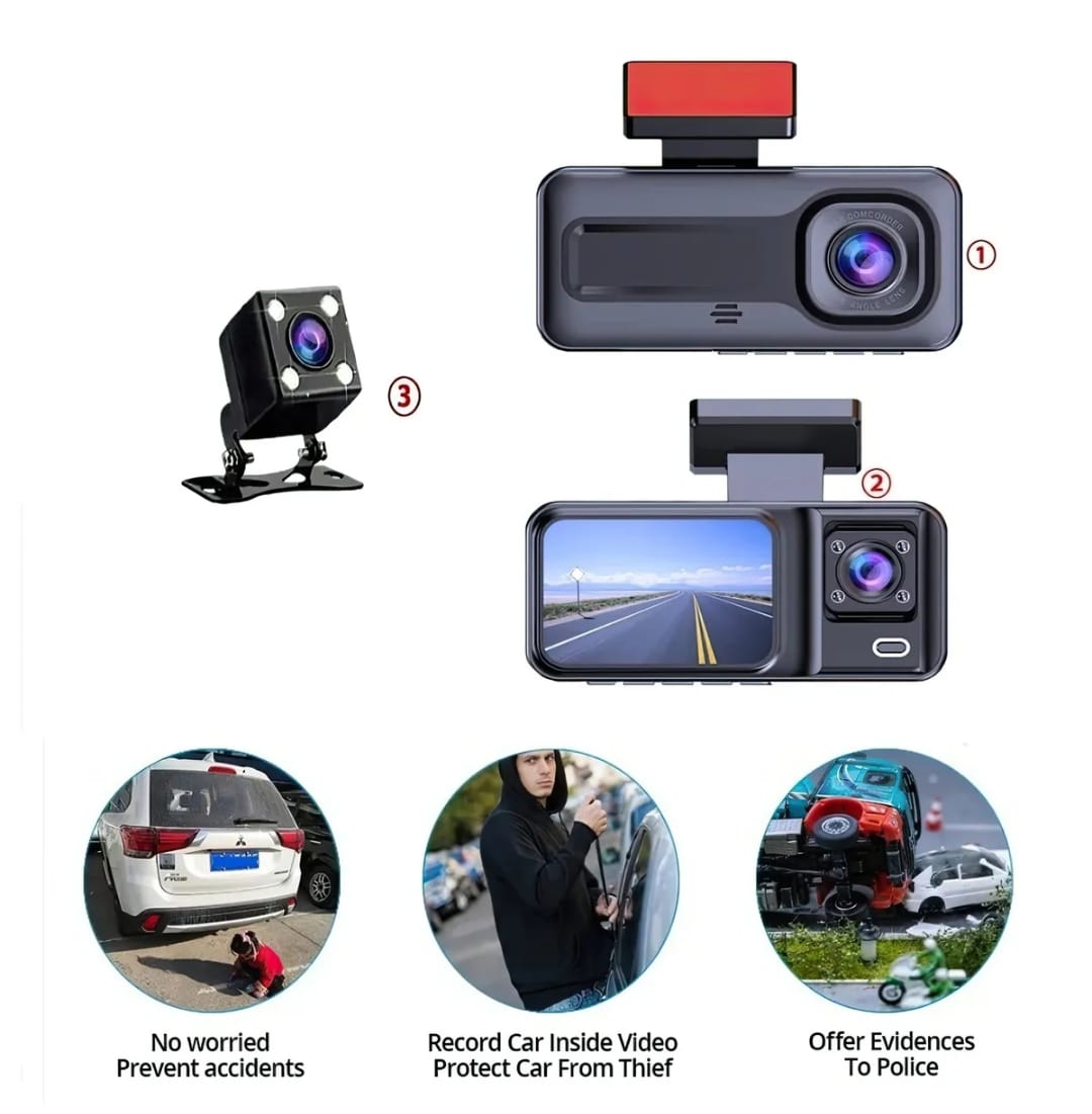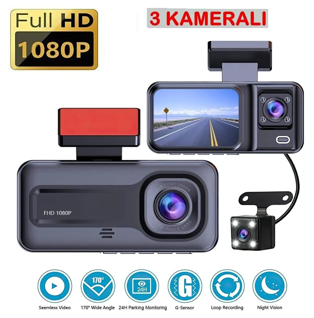 Araç İçi Kamera (3 KAMERALI 1080P / LCD EKRANLI / GECE GÖRÜŞLÜ / GERI GÖRÜŞ KAMERA / HAREKET ALGILAMA)