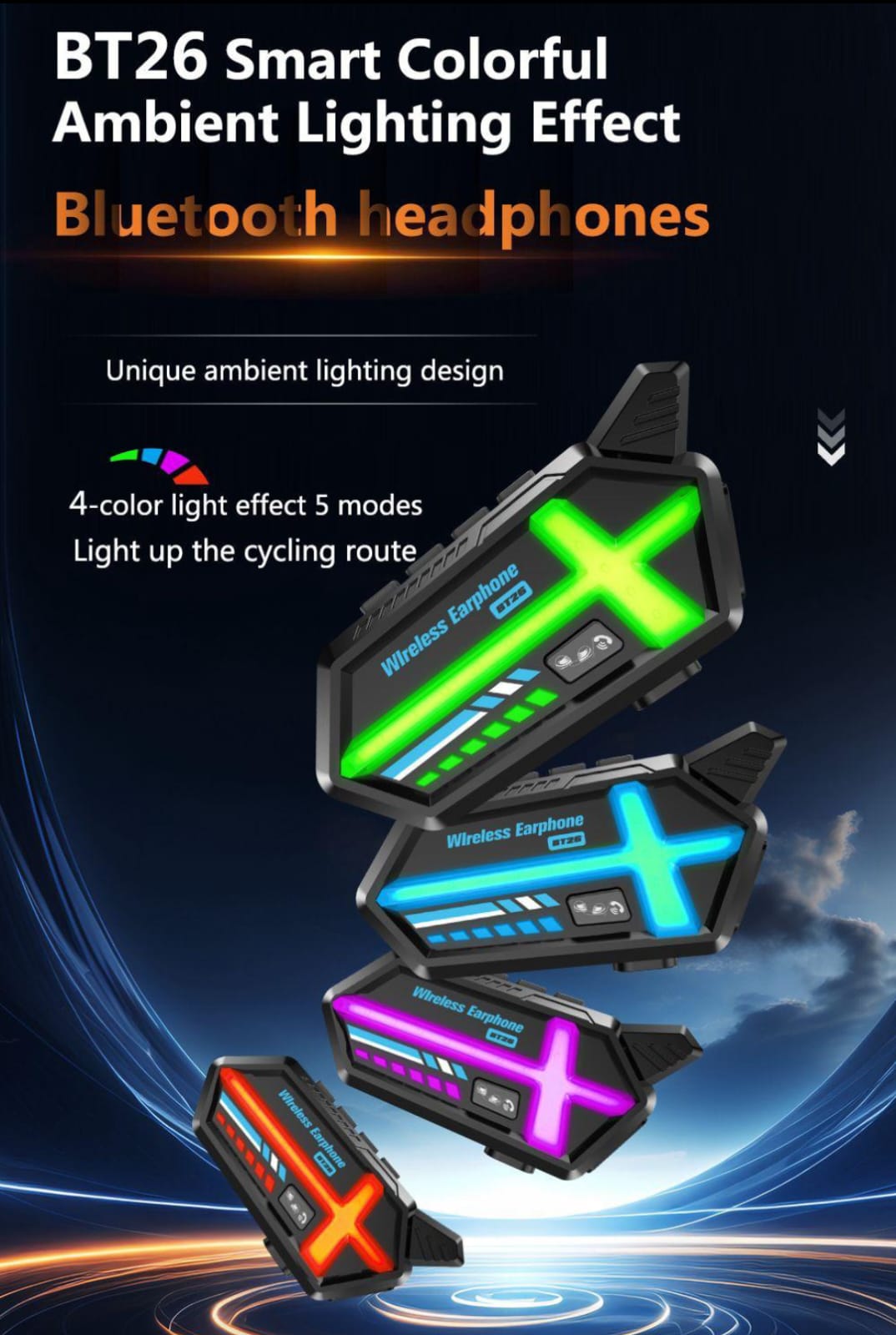 BT26 akıllı renkli ortam aydınlatma efekti Bluetooth kulaklı