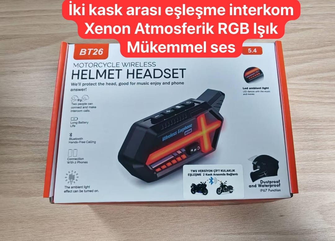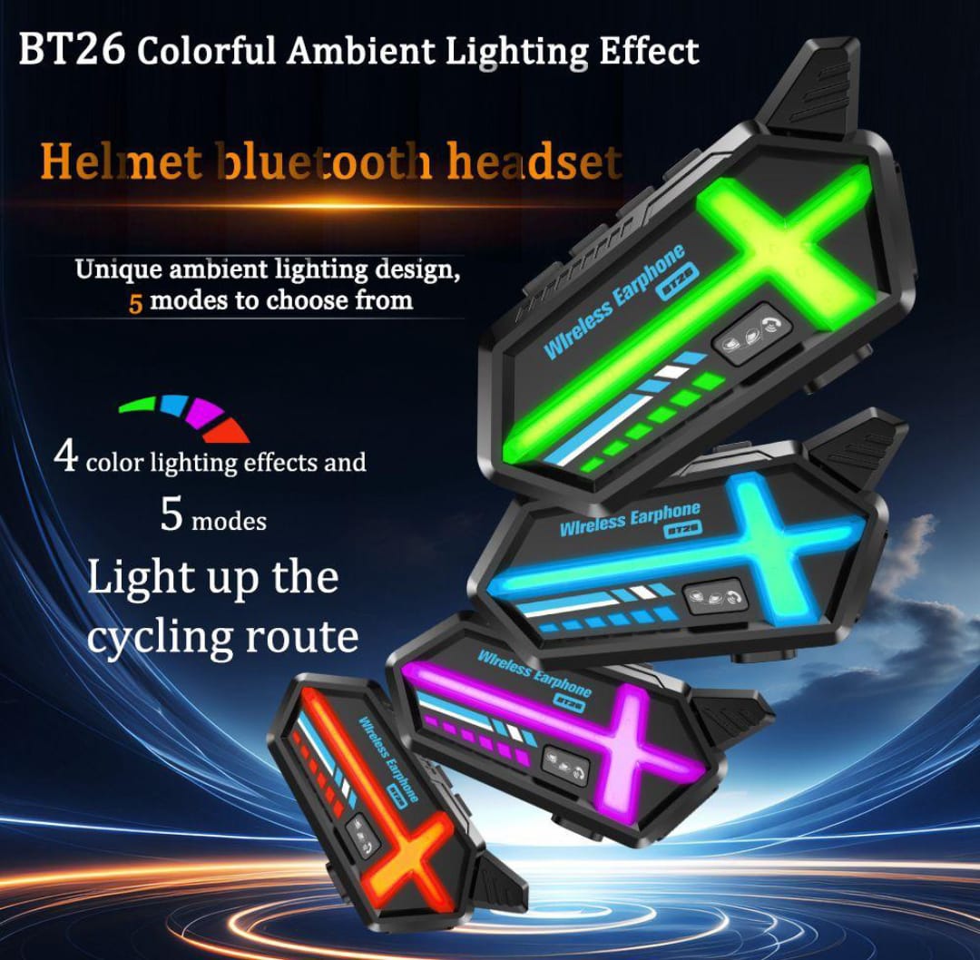 BT26 Motosiklet Kask Kulaklık Bluetooth RGB Işıklı 2 Eşleşme Özellikli 1000 Mah Intercom