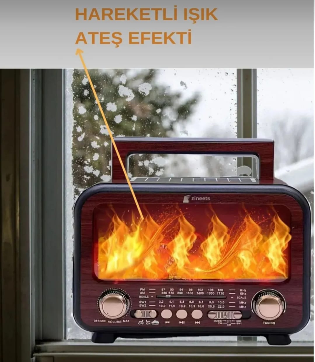 ☀️Alev Işıklı RGB LED Efekti – Ortamınıza sıcak ve nostaljik bir ambiyans katar.