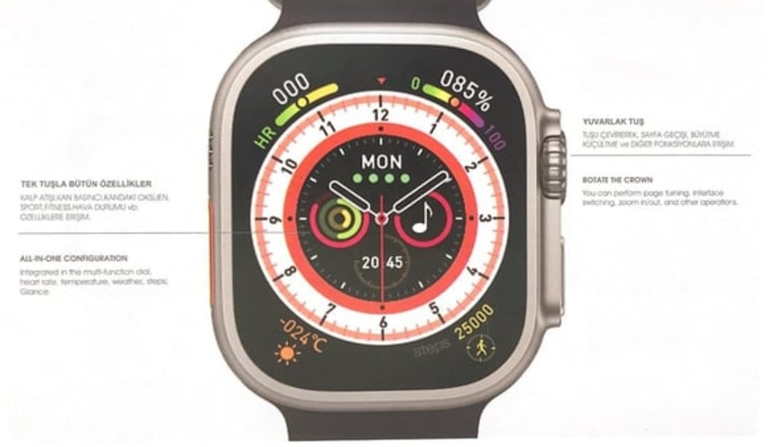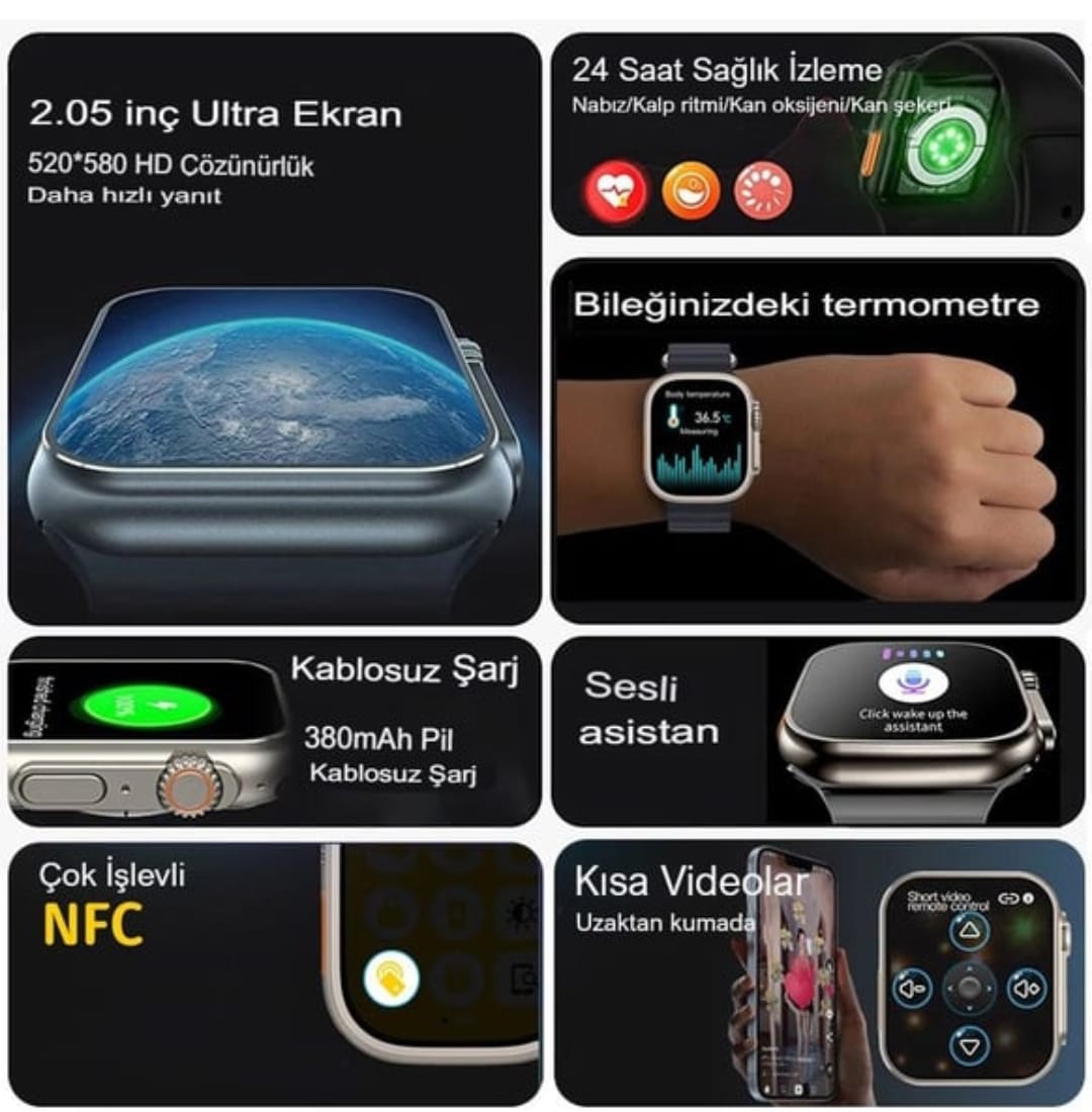 Uyumlu Markalar: Apple / Samsung / Xiaomi / Huawei / Oppo / Realme / İnfinix / Tecno / Reeder / General Mobile / Casper / LG / LenovoModel: Watch 8 Ultra Series T10 Ultra Bütçe Dostu Çift Kordon Akıllı SaatUygulama: Wearfit ProSIM KART: YOKHAFIZA KARTI: YOKGPS: VARNFC: VARUyumlu sistem: IOS / Android sistemiAndiord sistemi: Android 4.4 ve üstü desteğiIOS sistemi: Apple IOS 10.0 veya üzeriFonksiyonlar: Bluetooth araması, 500'den fazla arama desteği, nefes eğitimi, özel aramalar, kronometre, parlaklık ayarı, çoklu spor modu, uyku takibi, kalp atış hızı, bildirim görüntüleme, uzaktan müzik kontrolü, uzaktan fotoğraf çekme (mobil uygulama içerisinden), saat ve hava durumu, Telefon bul özelliği, şifre koruması, hesap makinesi, bölünmüş ekran, hızlı widget, kadın asistan, masaj cihazı, sesli asistan, çalar saat, el feneri, güç tasarrufu modu.Desteklenen Diller: Türkçe, İngilizce, çince, geleneksel çince, danca, yunanca, Latin, romence, İbranice, çekçe, lehçe, İspanyolca, almanca, rusça, portekizce, fransızca, japonca, italyan, vietnamca, korece, arapça, fars