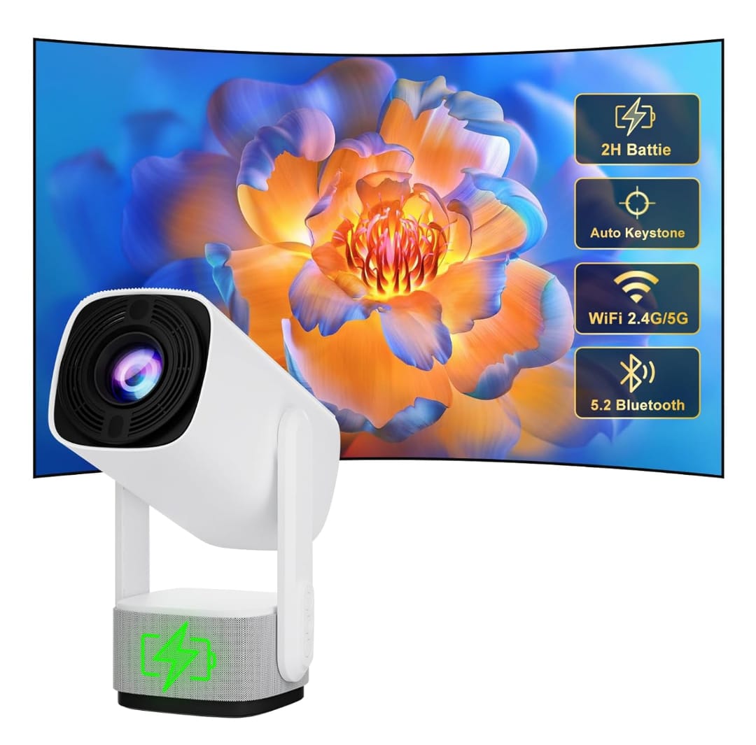Taşınabilir Powerbankli 4K 1080P Destekli Android Sistemli Projeksiyon Cihazı, hem evde hem de dış mekanda film izleme deneyiminizi bir üst seviyeye taşımak için tasarlandı. Modern ve şık tasarımı sayesinde her ortamda dikkat çekici bir görüntü sunar.
